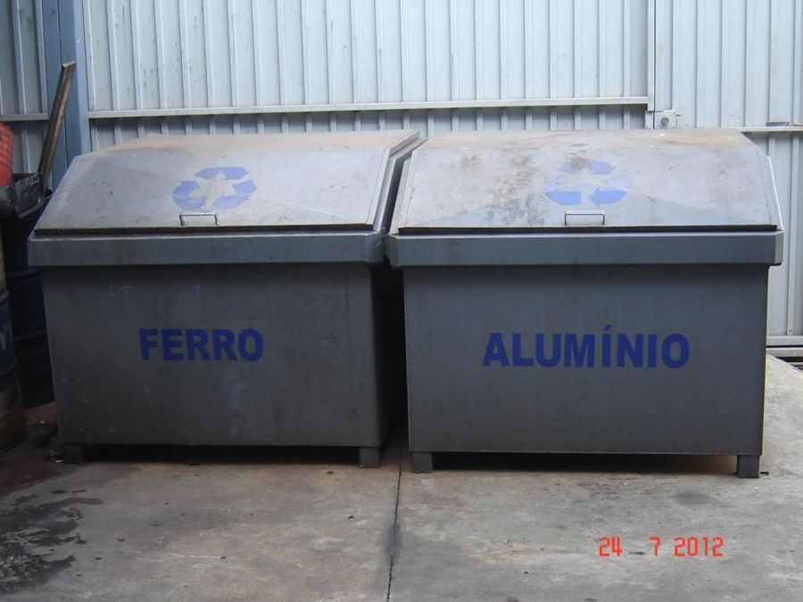 Reciclagem de materiais ferrosos (sucata de ferro e aluminio ), são armazenados em containeirs separados e identificados para entrega a empresa especializada.