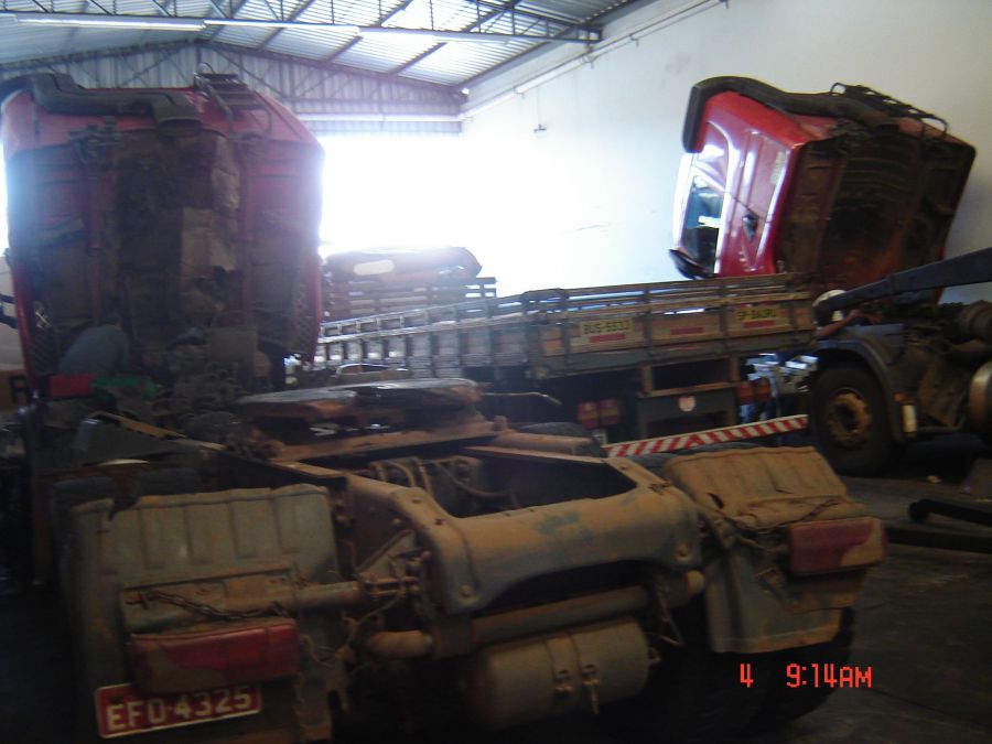 Setor que abriga os veículos como, caminhões, pickups e outros, que estão aguardando o serviço de retífica em seus motores.